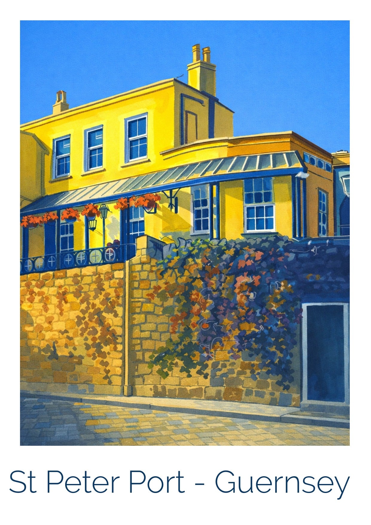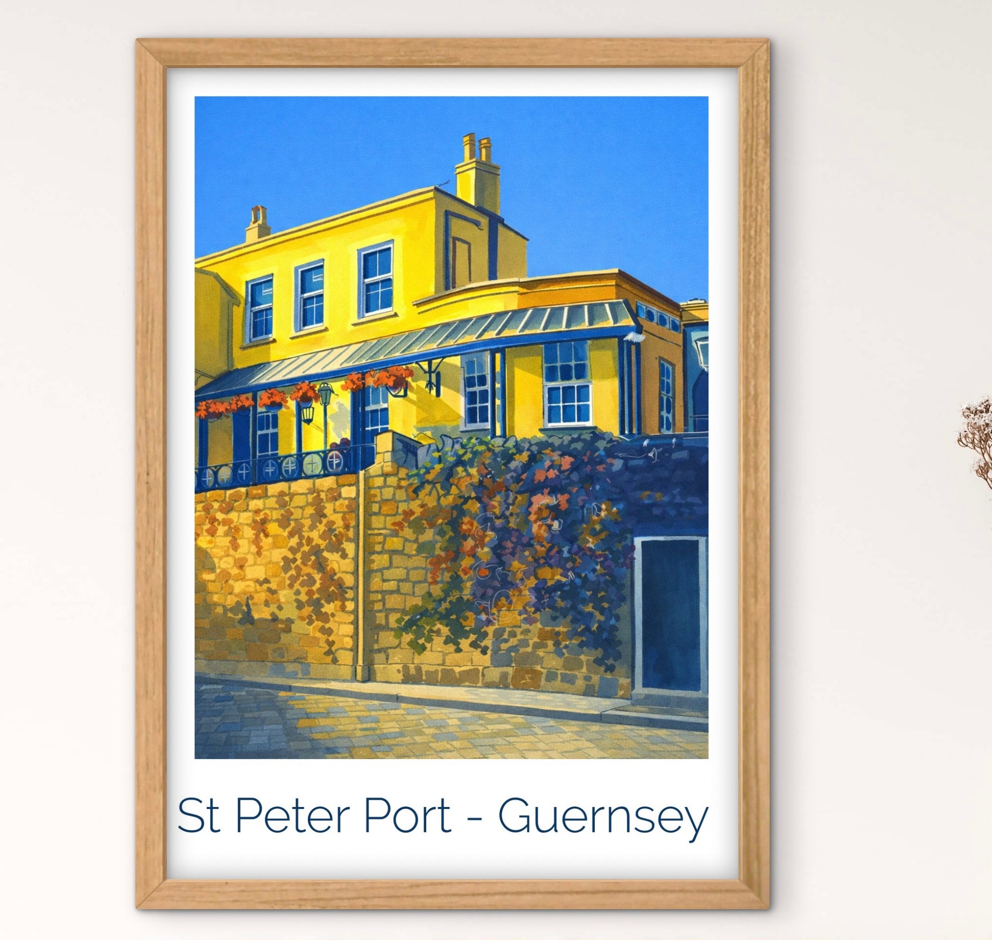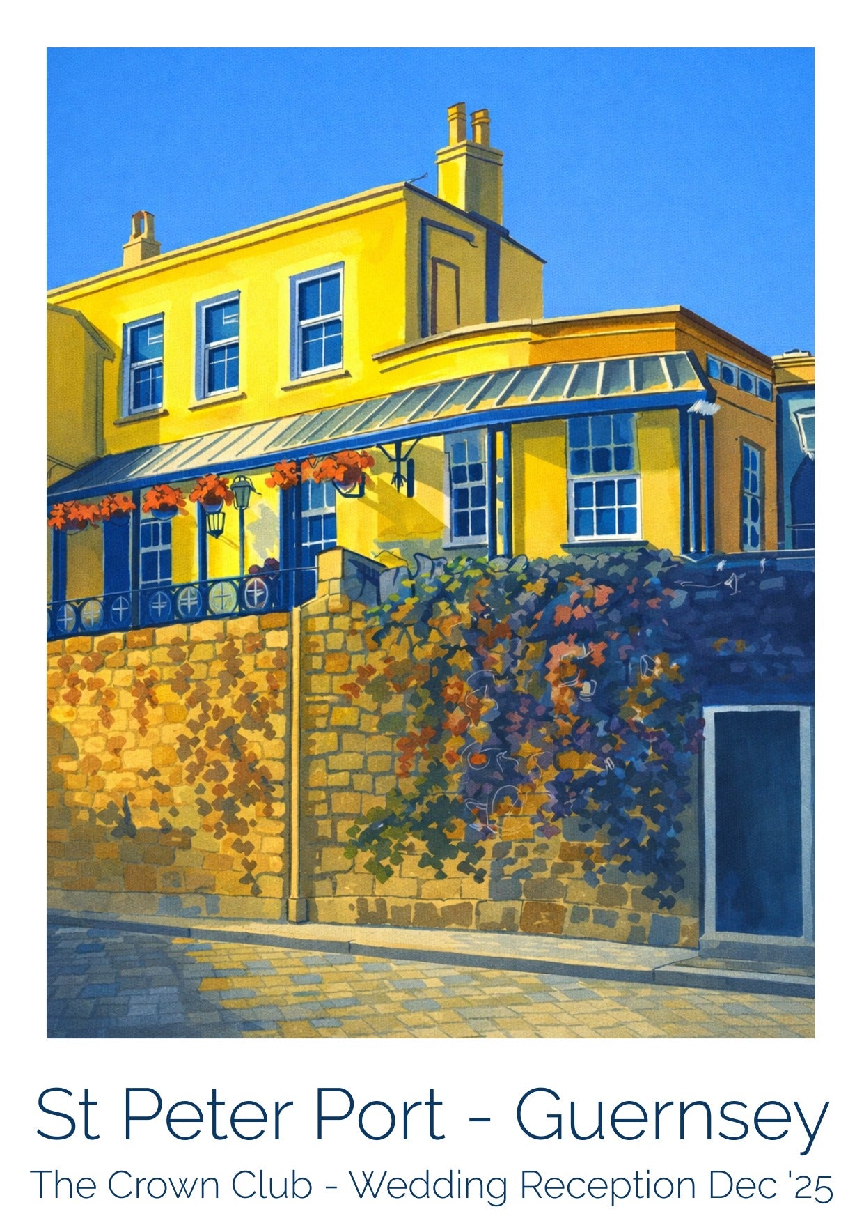 This graphic design evokes memories of favourite pubs, bars, and restaurants, rendered in a warm, nostalgic style that invites you in. Each piece in the series celebrates Guernsey's social heart — places that matter, moments worth remembering.